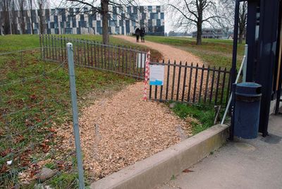 Le grillage a été très rapidement découpé, de manière sommaire, probablement suite à un désaccord entre l’université et les Transports Lausannois (TL). Un des raccourcis a été temporairement aménagé, avec des copeaux et deux barrières.