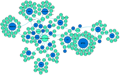 Les organisations proches de IPTC ainsi que les individus membres de leurs comités d'administration. Un certain Marco Tomasini apparait comme personnage central.