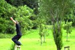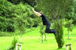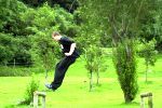 9. Phase de redescente, il faut relever un peu les pieds, pour bien atterir sur la plante des pieds, on arrive plutôt de haut(il faut pour cela bien lever les genoux). Mettre les bras un peu en arrière pour être équilibré et arriver sur le saut plutôt léger et bien stable